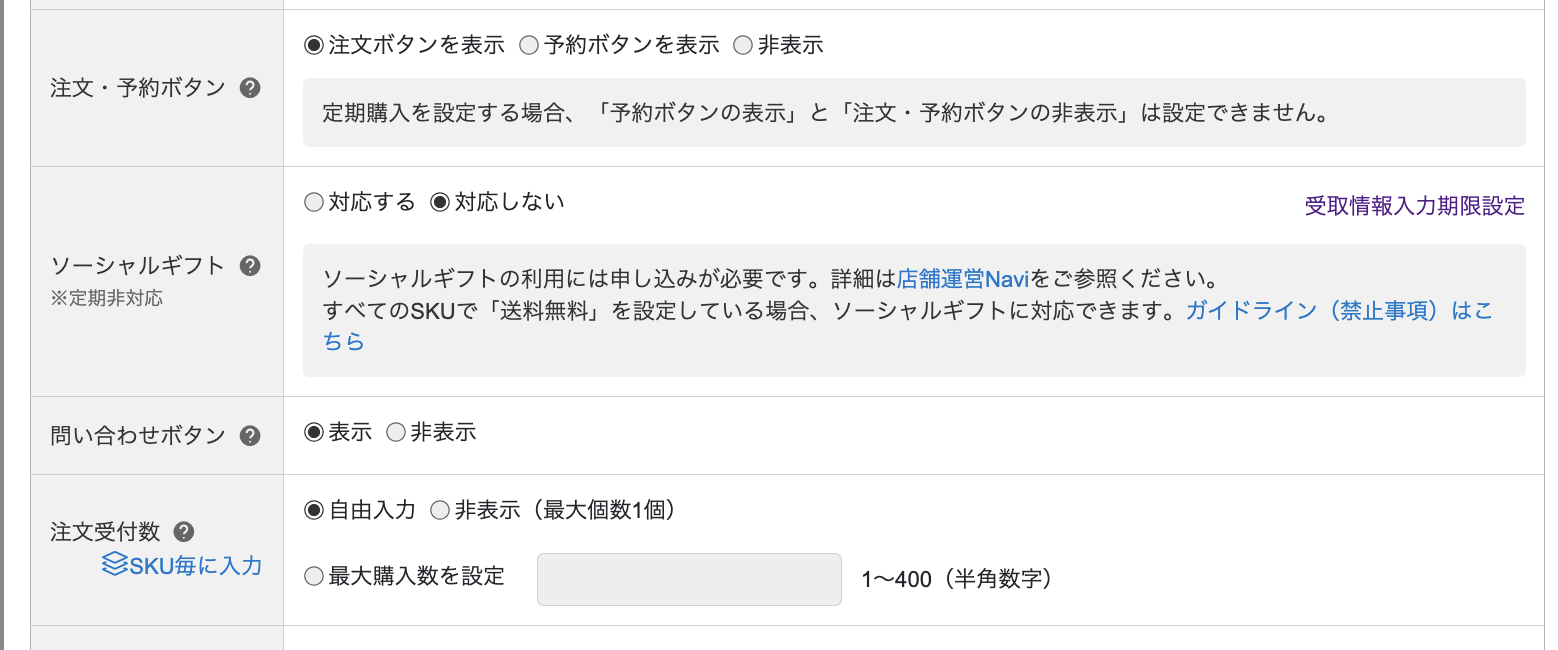 1)各商品ごとに「ソーシャルギフト」を設定